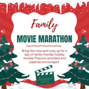 Bring the crew and cozy up for a day of family-friendly holiday movies! Popcorn provided and pajamas encouraged.