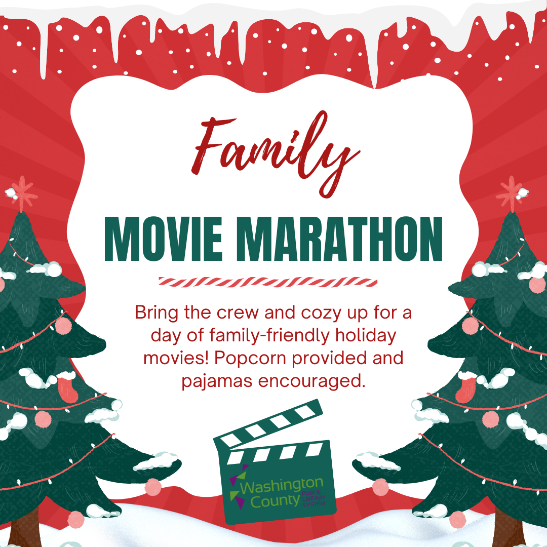 Bring the crew and cozy up for a day of family-friendly holiday movies! Popcorn provided and pajamas encouraged. |